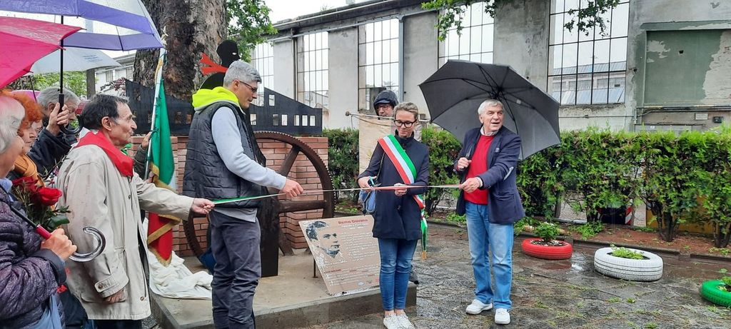 Alla presenza, tra gli altri, della vicesindaca di Asti, Stefania Morra e del presidente di Banca di Asti, Giorgio Galvagno, i presidenti del circolo W.A. Piero Amerio e dell’Anpi, Paolo, Monticone, hanno brevemente spiegato i motivi che hanno portato alla realizzazione del monumento – la figura di un partigiano che svetta su uno sfondo che ricorda il contributo delle fabbriche astigiane alla lotta di liberazione, opera dell’artista e cugino di Remo, Andrea Dovano su ispirazione di Laurana Lajolo e Claudio Cerrato – a ottant’anni dagli scioperi del ’43 ed a 79 dalla barbara esecuzione di Remo.