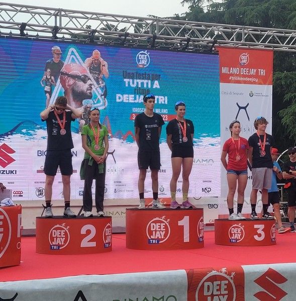 Tra i Ragazzi ottimi piazzamenti per i torinesi Pietro Ciccarelli e Giovanni Durando entrambi a pochi secondi dal podio al 4° e 5° posto. Nella gara riservata alle Ragazze, brave Chiara Gai, 6° e Giulia Rivella, 9°. A Madrid (SPA), sabato 3 giugno, si sono disputati Campionati Europei di ParaTriathlon, a causa delle condizioni atmosferiche la gara è stata trasformata in un Duathlon, ancora una grande gara e una medaglia di bronzo della categoria PTVI per Francesca Tarantello e la sua Guida Silvia Visaggi, un po’ penalizzate dal cambiamento del format della gara. Sabato 3 e domenica 4 giugno, sì è disputato a Milano Idroscalo l’iconico appuntamento del Dee Jay Tri organizzato da Radio DJ con lo speakeraggio di Marcello Finelli di Scannellatori Seriali.