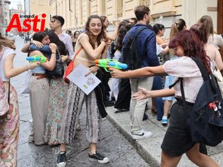 Qualche gavettone e caroselli sui motorini, ma anche un flash mob in piazza San Secondo e un incontro all'Istituto Alfieri con la dirigente Maria Stella Perrone: tanti i modi per festeggiare la giornata.