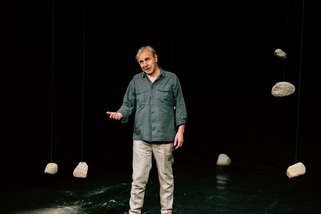 Quattro attori e un musicista appaiono e scompaiono tra le tombe, conducendo a gruppi gli spettatori in un percorso tra le lapidi di pietra, gli alberi e i cespugli che da soli compongono la più perfetta delle scenografie. La riflessione è sulle nostre radici ma anche sul significato della vita in generale, del lavoro e della morte, è la costituzione temporanea di una “comunità verticale” dove viventi e vissuti per un’ora celebrano le proprie storie.