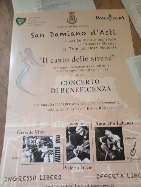 Nobili finalità avrà anche “Il canto delle sirene”, concerto di beneficenza, in programma lunedì 26 alle 20, che vedrà protagonista il Trio Leucosia (Gerardo Vitale, Valerio Iaccio e Antonello Labanca). Il ricavato dell’appuntamento, ad ingresso con offerta libera, verrà destinato alle zone dell’Emilia Romagna colpite dall’alluvione.