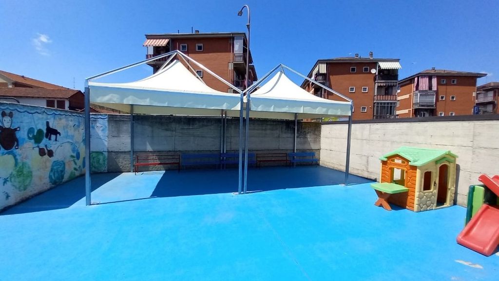 Grazie ad una generosa iniziativa dei genitori dei bimbi che frequentano l’istituto, il giardino della scuola dell’infanzia “XXV Aprile” ora dispone anche di due gazebo, strutture completamente finanziate dai genitori degli alunni sia per quanto concerne le spese d’acquisto che quelle di posa delle strutture.