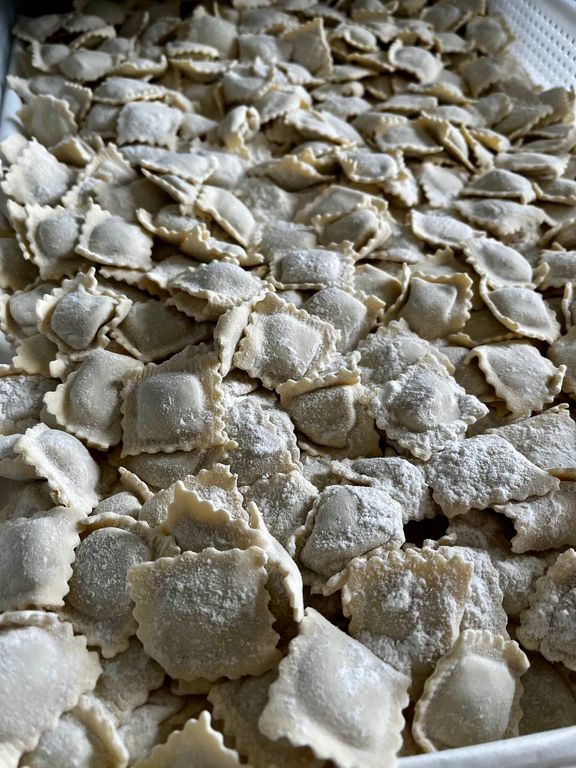 Il nostro è un negozio tradizionale, ma le nostre specialità sono gli agnolotti e la salsiccia. Ci dicono che siamo un punto di riferimento per la qualità dei prodotti. Facciamo agnolotti speciali, anche d’oca. Stamattina abbiamo fatto il classico piemontese, spinaci e ricotta e anche ripieni di zucchina nostrana e robiola di capra. Faccio spesso prove, partendo dai prodotti di stagione.
