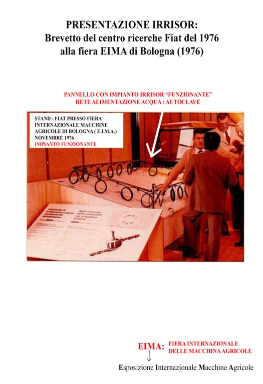 M. — Se qualche start-up o qualche nuova impresa volesse ri-brevettare il sistema IRRISOR e avesse intenzione di produrlo, sarebbe già tutto pronto. Invece di buttare via questo sapere, lo si può impiegare, con i dovuti correttivi, nel commercio – facendo anche del bene all’ambiente. È una tecnologia “piatta”, che si realizza con poca attrezzatura.