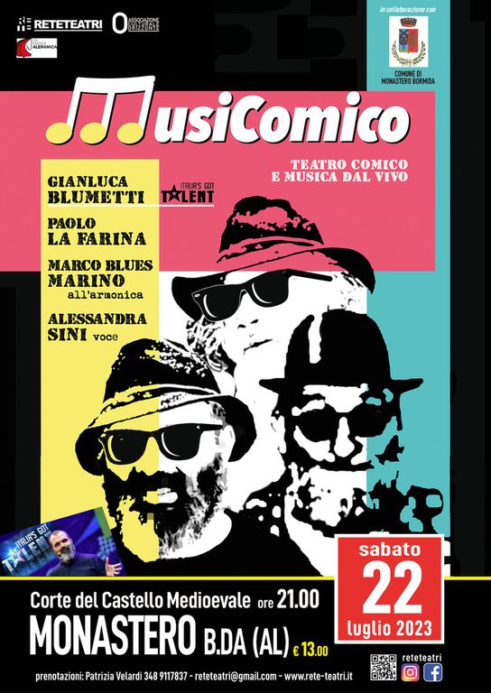 Il castello medievale di Monastero Bormida diventa il palcoscenico di un evento spettacolare: "Musicomico". In collaborazione con il Comune e la Proloco di Monastero Bormida, RETETEATRI presenta infatti una serata di divertimento assicurato, in programma il prossimo sabato 22 luglio 2023, alle 21.