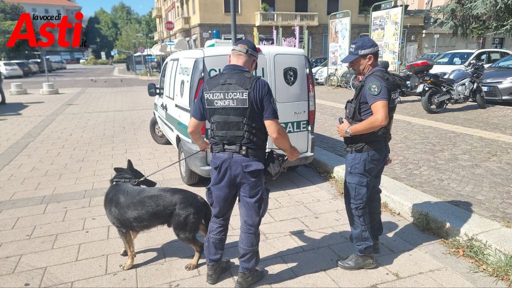 Nuovi controlli interforze intorno alla stazione di Asti. Intervenuta anche la cinofila della polizia locale [FOTO]