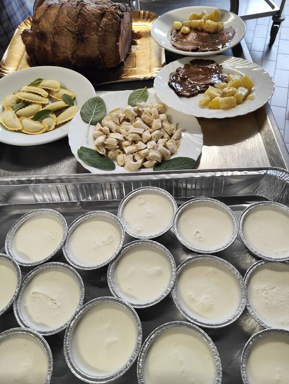 Agnolotti al burro e salvia, arrosto di manzo con patate al forno e panna cotta, questo è il menù del pranzo offerto lunedì 31 luglio abilmente preparato dagli Chef Marco e Houda dell’Osteria 101.