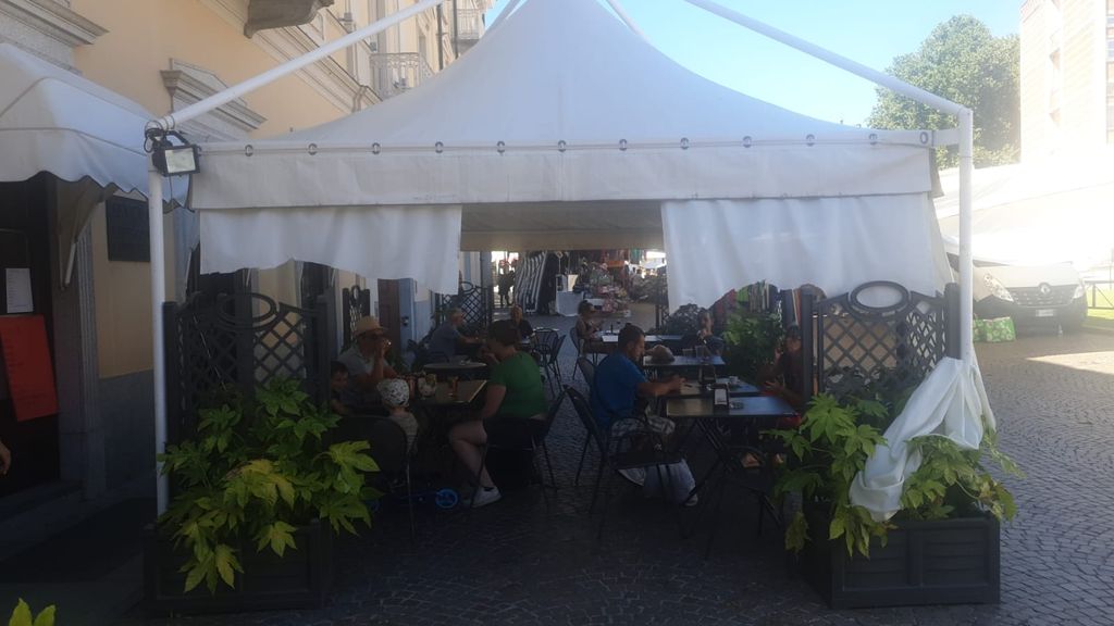 Vandali in azione al bar Sevenap di piazza Libertà di Asti: tende tagliate e faretti rubati