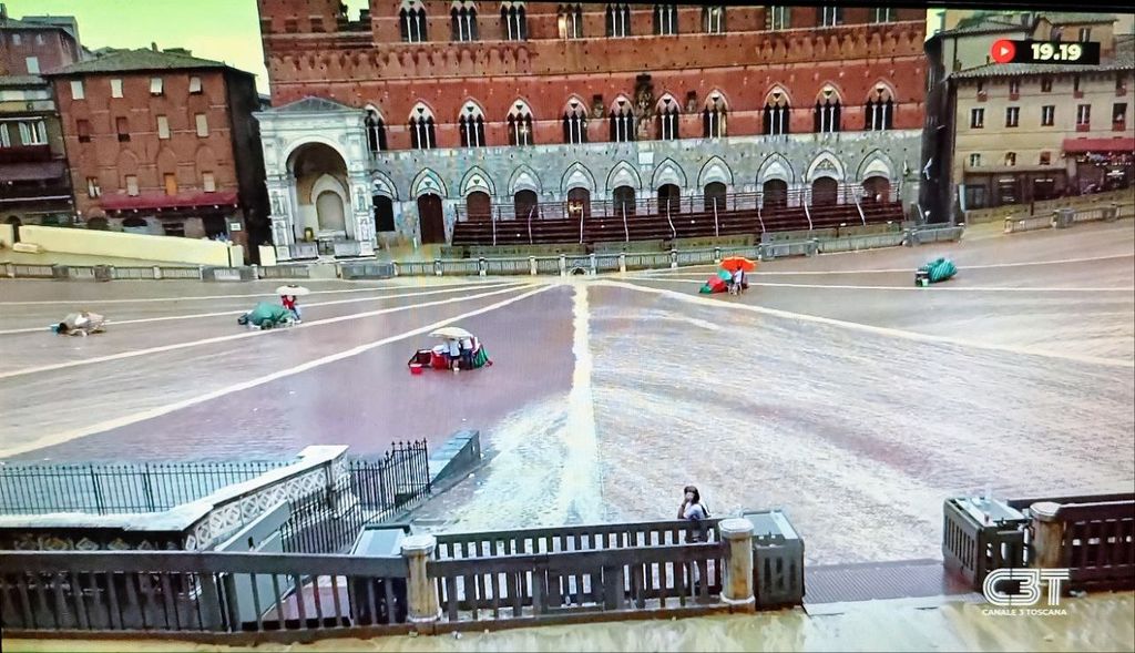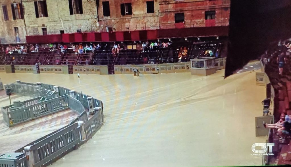 E' stata esposta la bandiera verde alla trifora del Palazzo Pubblico di Siena, che comunica l’annullamento della terza prova del Palio, in programma questo pomeriggio alle 19,15.
