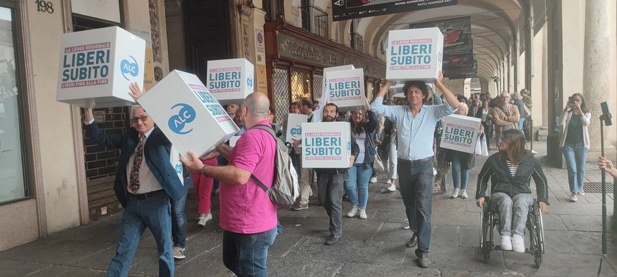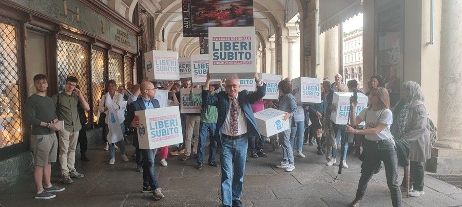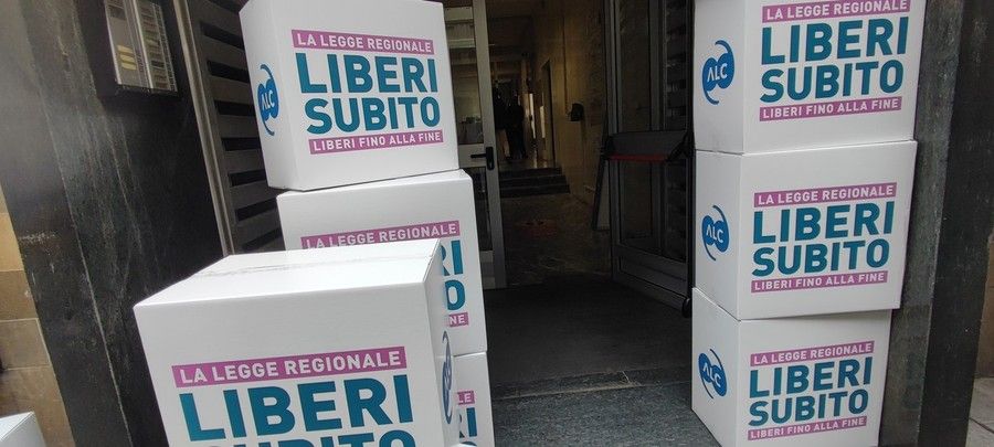Marco Cappato e l'associazione Luca Coscioni hanno consegnato al Consiglio regionale del Piemonte le firme raccolte per la proposta di legge regionale sul fine vita. Questa mattina alle 11 si è tenuta la presentazione della campagna 'Liberi Tutti' sotto i portici di Piazza San Carlo, e successivamente i membri dell'associazione hanno portato le scatole con le firme a Palazzo Lascaris, sede del Consiglio Regionale.