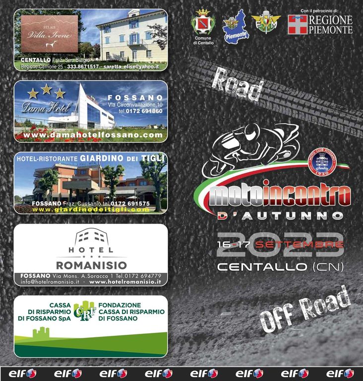 “Visto il successo delle ultime edizioni primaverili, abbiamo pensato di proporre un appuntamento autunnale, il penultimo ufficiale in attesa della grande chiusura di stagione ad Alba, che si terrà domenica 24 settembre, con la Reunion Bikers organizzata dall'associazione Mettinmotolavita – dichiara Gianni Mina, presidente del Motoclub Fossano – Il Comune di Centallo, che ha già ospitato eventi motociclistici, sarà la nostra nuova cornice per questo appuntamento di cui siamo molto orgogliosi.”