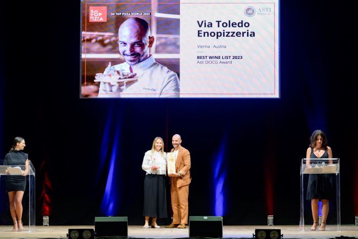 La Via Toledo Enopizzeria di Vienna fa il bis e si aggiudica per la seconda volta l’Asti DOCG Award, il premio per la miglior carta dei vini firmato Consorzio Asti Docg assegnato ieri sera al Teatro di Corte di Palazzo Reale di Napoli nel corso della tappa conclusiva di 50 Top Pizza 2023, con l’incoronazione delle migliori 100 pizzerie al mondo. Al locale viennese guidato dal pizzaiolo pugliese Francesco Calò - già premiato a maggio in occasione dell’appuntamento europeo della guida online per la sezione migliori pizzerie del globo – il riconoscimento dell’ente consortile “per una wine list che conta oltre 150 referenze provenienti esclusivamente dall’Italia, suddivise per annate e territori in un percorso che esalta il pairing pizza gastronomica ed etichette di pregio”.