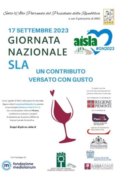 “La Regione Piemonte insieme a Visit Piemonte è a fianco di Aisla in questa importante iniziativa nazionale di solidarietà e rinnova il sostegno nell’anno in cui si celebrano i 40 anni dell’Associazione per un appuntamento reso possibile grazie al Consorzio Barbera d’Asti e vini del Monferrato, gli enti del territorio di Asti e Alessandria e le fondazioni bancarie. Sono lieto di constatare che siano aumentati i produttori che scelgono di prendere parte all’iniziativa con le bottiglie di Barbera d’Asti Docg, il vino tra i maggiori rappresentanti della produzione vitivinicola eccellente del Piemonte. Un grazie, inoltre, ai tanti volontari che saranno presenti nelle piazze italiane per la raccolta fondi necessaria per aiutare concretamente le persone colpite dalla sclerosi laterale amiotrofica”, conclude l’assessore all’Agricoltura e Cibo della Regione Piemonte, Marco Protopapa.