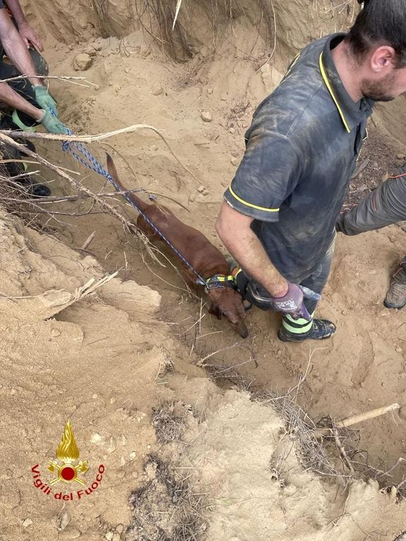 Cane finisce nella tana di una volpe. I vigili del fuoco lo liberano dopo ore