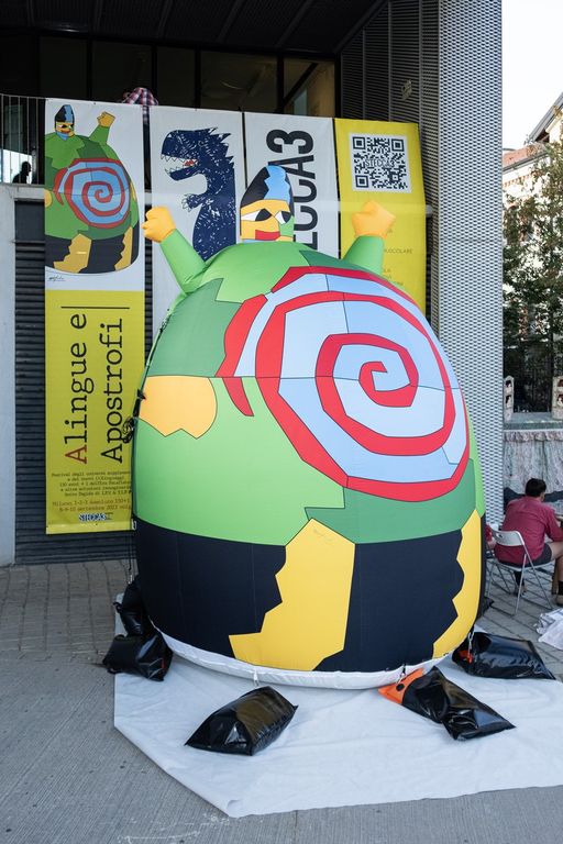 Da qui la scelta di Ugo Nespolo, artista eclettico e con visioni originali e innovative, di progettare per questa importante occasione, un gonfiabile alto 4 metri, realizzato da Peraria, che riproducendo Père Ubu, personaggio iconico e identitario della Patafisica ideato da Jarry, ma rivisto attraverso gli occhi di uno dei maggiori artisti contemporanei, viene trasformato in un’opera d’arte unica e assoluta.