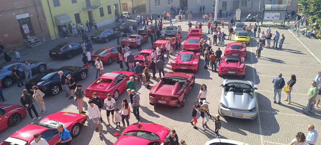 18 Ferrari, 3 Maserati, 3 Porsche, 2 Alfa Romeo 4C e 1 Lamborghini, per un totale di 27 autovetture, è giunto dal nord d'Italia nella piazza Municipio, dove un numeroso gruppo di appassionati di motori li attendeva fin dalle 9 del mattino.