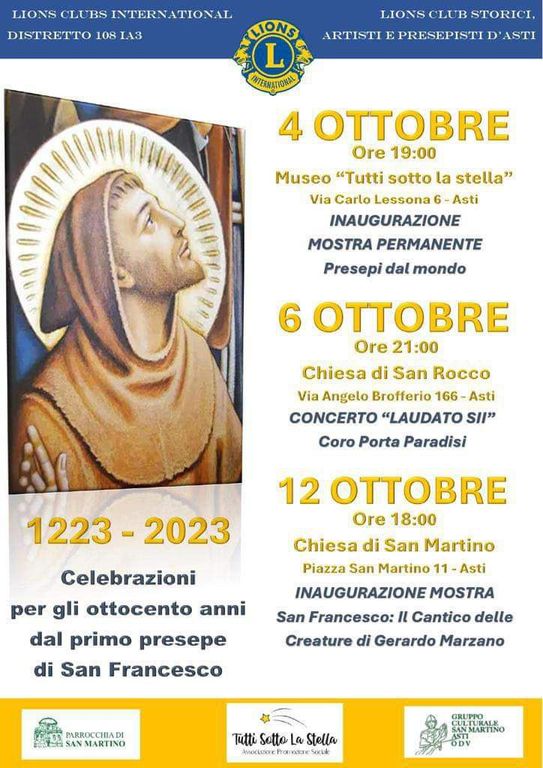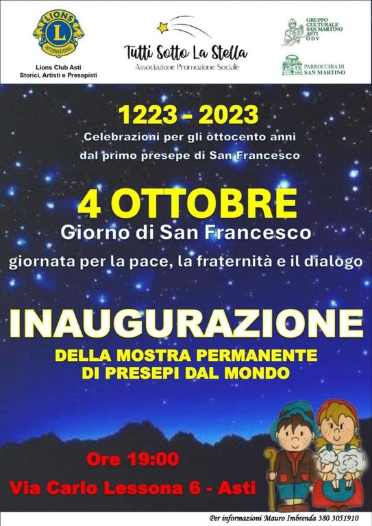 Il nuovo sodalizio ha visto da subito una forte collaborazione con il Lions Club Storici, Artisti e Presepisti d'Asti, la parrocchia di San Martino e l'associazione culturale San Martino. Questa importante sinergia ha portato alla creazione di una mostra permanente di presepi dal mondo, provenienti dalle collezioni di Maria e Mauro Imbrenda, che verrà inaugurata mercoledì 4 ottobre, giorno di San Francesco.