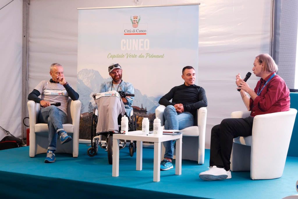 Determinazione, professionalità, solidarietà e inclusione. Questi sono i principi che animano il trio di ciclisti cuneesi, composto da Claudio Garelli, Davide Rivero e Luca Cucchietti, che lunedì 2 ottobre è partito, pedalando insieme, per percorrere circa 800 Km con 15.000m di dislivello lungo il percorso francese del Cammino di Santiago, in maniera ecologica e sostenibile: handbike per Luca Cucchietti e gravel per Claudio Garelli e Davide Rivero. La finalità è quella di raccogliere i circa 10.000 euro necessari all’acquisto di una bicicletta a pedalata assistita ad uso di anziani, disabili, ipovedenti e che, grazie al Comune di Cuneo, sarà a disposizione della collettività.