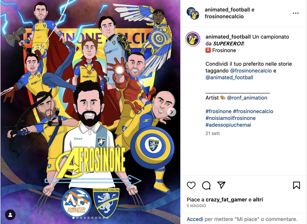 Anche se siamo attivi da appena un anno, ne abbiamo già fatte parecchie di esperienze emozionanti. Ad esempio, siamo come diventati il talismano portafortuna del Frosinone Calcio. Una bellissima esperienza che li ha poi portati in serie A. Abbiamo stampato card e le abbiamo messe all'interno di uno speciale cofanetto.
