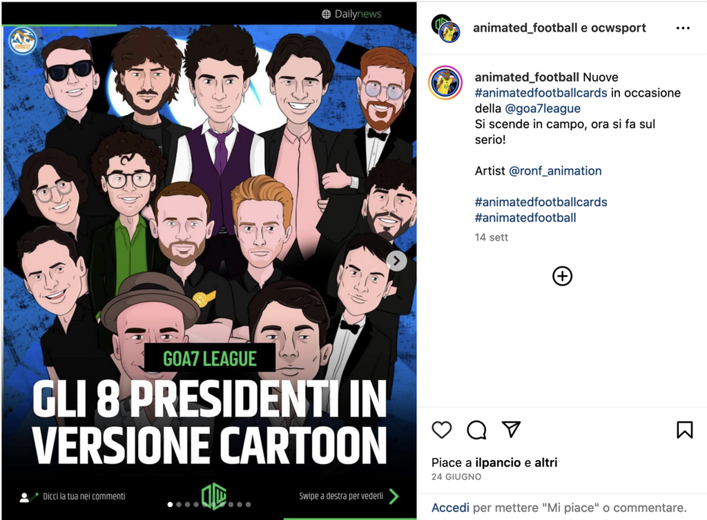 Allora, siamo partiti realizzando un prototipo di Dybala, era proprio un embrione, ma da cui è nato tutto. Subito dopo abbiamo realizzato Ronaldo, che è tuttora la nostra immagine profilo, rappresenta il nostro talismano portafortuna. Il primo post uscito come "Animated Football", invece, è stato una card animata di Del Piero. Alla terza card realizzata ci ha risposto Iaquinta. Inutile dire che, da quel momento, ci siamo gasati un casino!