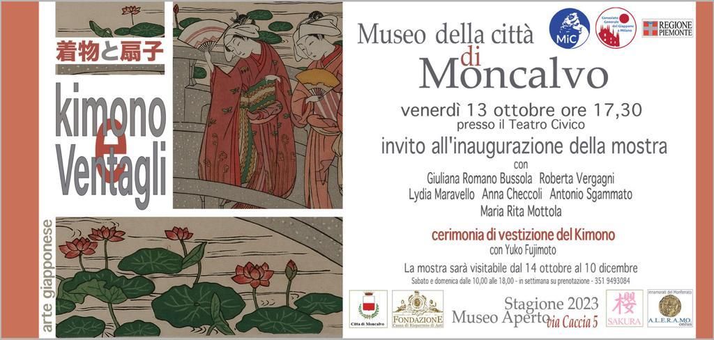 Dal 13 ottobre al 10 dicembre, il Museo Civico di Moncalvo ospiterà la mostra “Kimono e ventagli – 着物と扇子”, dedicata alla cultura e alla tradizione del Giappone. L’esposizione, promossa da A.L.E.R.A.MO. Onlus Aps, fa parte di un ciclo triennale per la valorizzazione del fondo di arte giapponese Franco Montanari, diplomatico di origine moncalvese che fu addetto di ambasciata a Tokyo dal 1953 al 1954.
