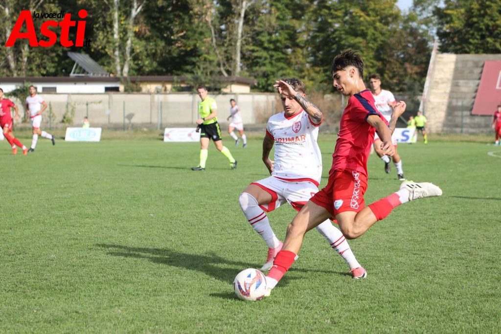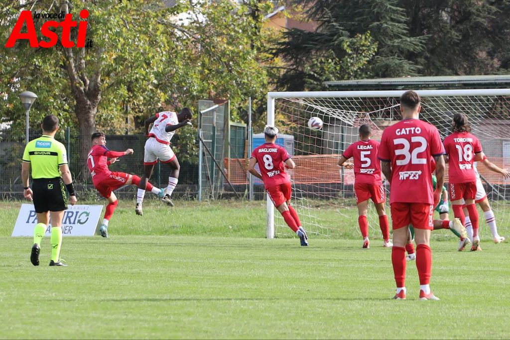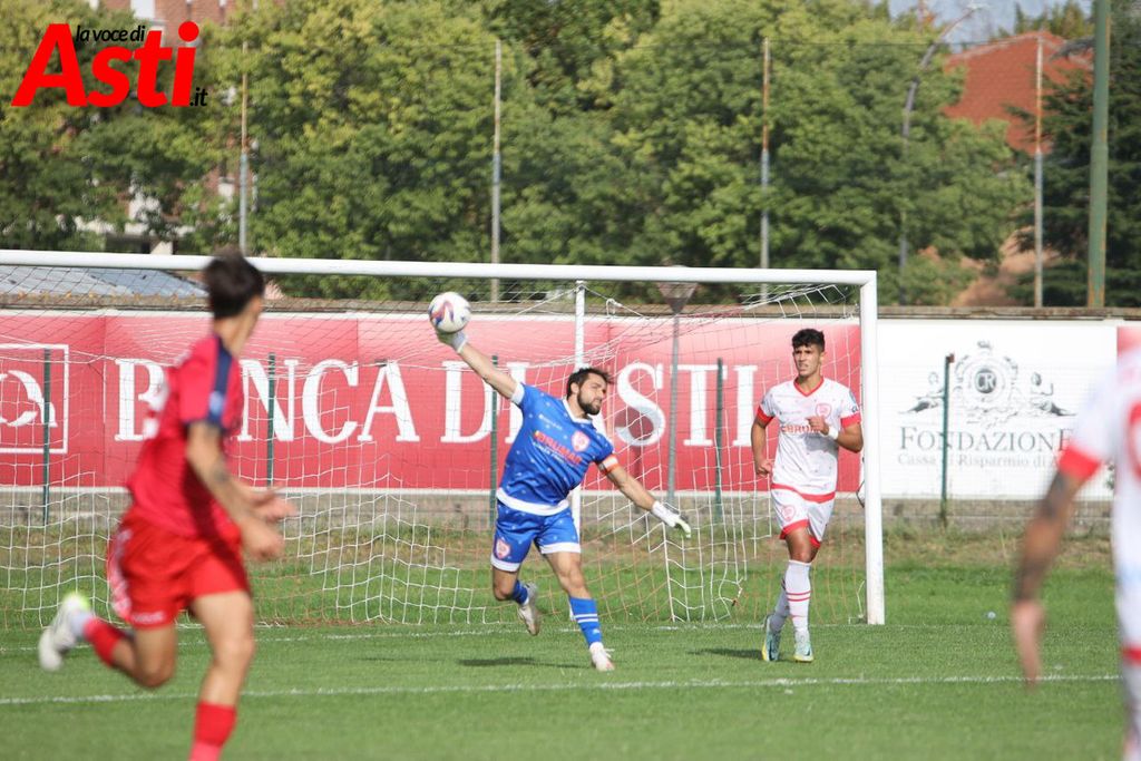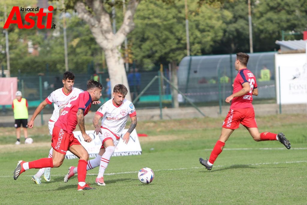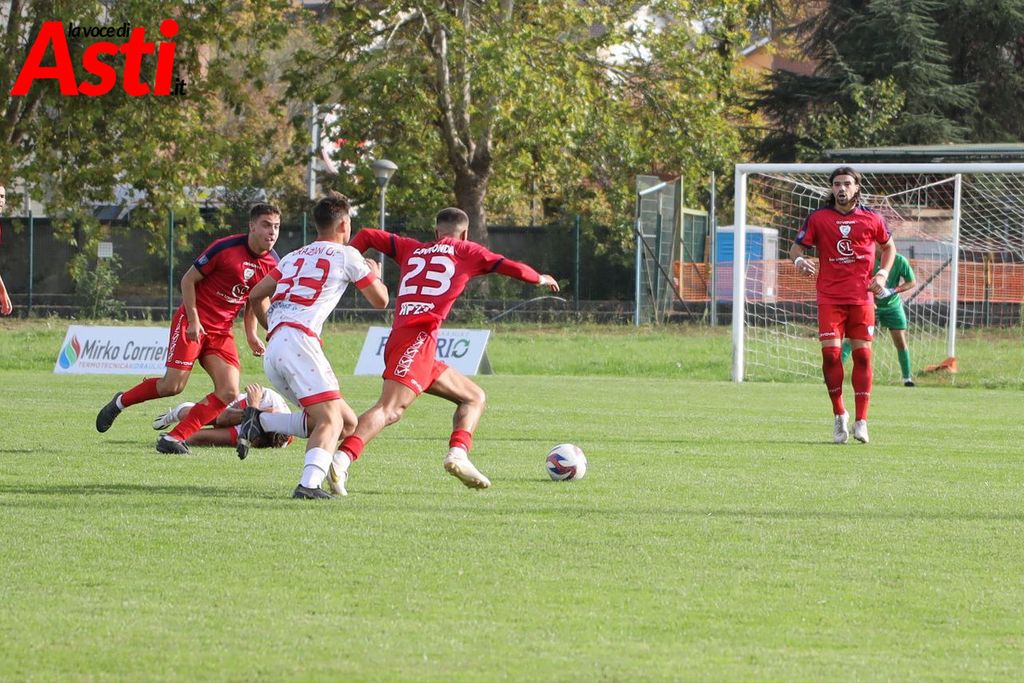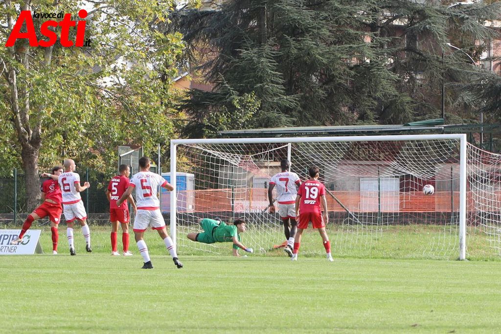 I biancorossi si regalano una prestazione maiuscola chiudendo già il match nei primi 45 minuti di gioco. I galletti la sbloccano subito al minuto 11, quando Soumahoro supera Bohli. Raddoppio al 15' con Valenti, mentre il tris dell'Asti arriva con l'ex Giacchino al 35'.
