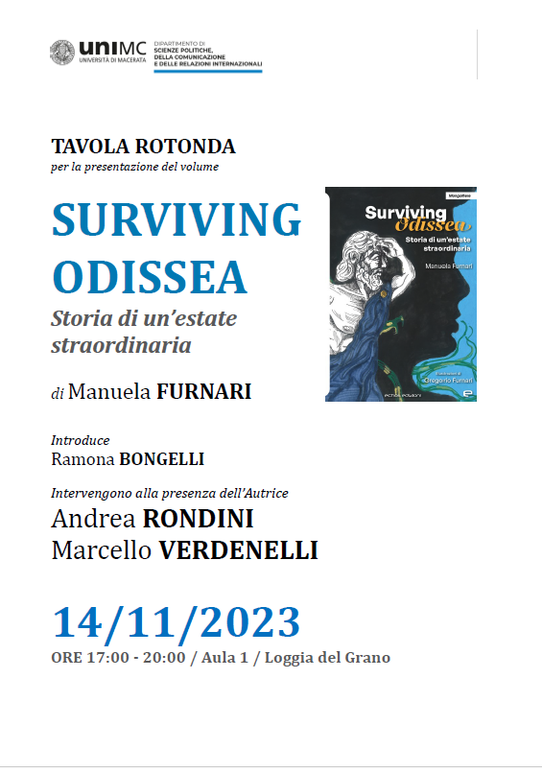 La docente e saggista astigiana, Manuela Furnari, sarà protagonista domani, martedì 14 novembre, dalle 17 alle 20, all'Università di Macerata, dove presenterà il libro "Surviving Odissea. Storia di un'estate straordinaria"
