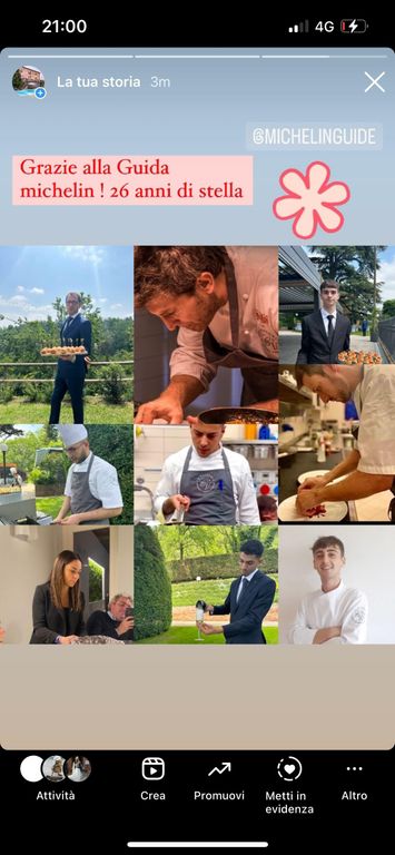 Conferma la sua stella dopo 26 anni, il ristorante Cà Vittoria di Tigliole, che ringrazia tutta la sua squadra per la ricerca e innovazione.
