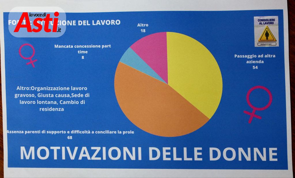 Il fatto, raccontato dalla consigliera di parità della Provincia di Asti, Loredana Tuzii, è un corollario molto indicativo dei dati 2022 - illustrati oggi in Provincia alla presenza delle parti sociali - sulle dimissioni lavorative, inviati dall’Ispettorato del Lavoro.
