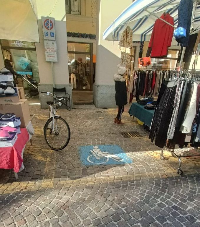 Con tutta la gentilezza e il garbo possibile un lettore che evidentemente si trova in difficoltà, segnala che nei giorni di mercato è impossibile parcheggiare nei posti destinati ai disabili in piazza Alfieri "perché occupati dai banchi".