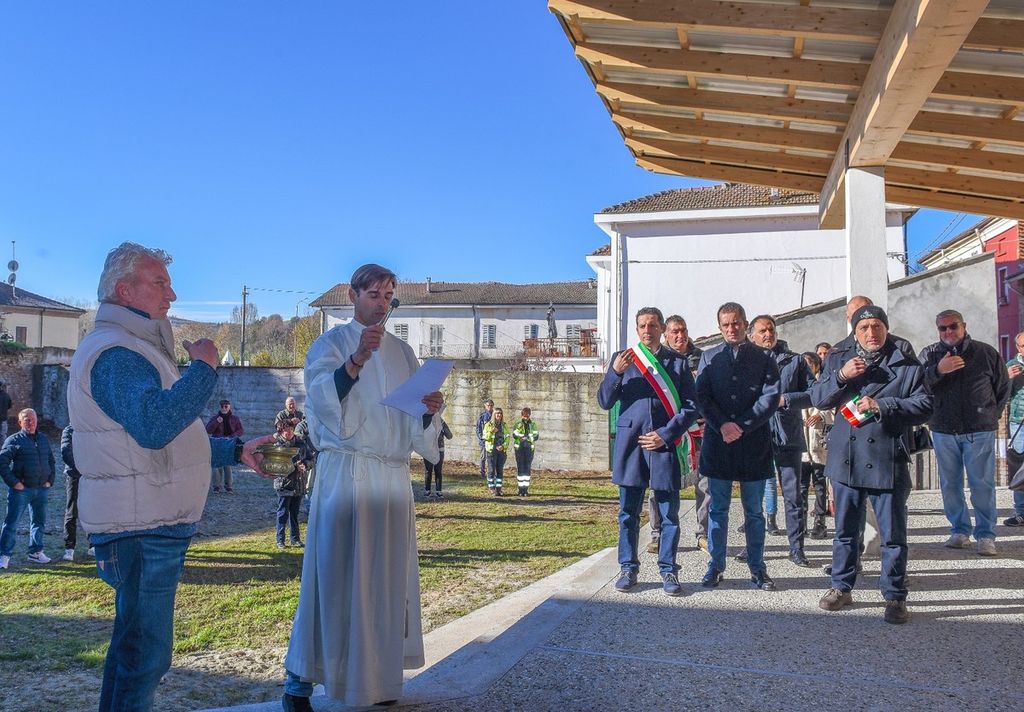 Il sindaco Aldo Allineri ha illustrato al pubblico il progetto, finanziato da un bando europeo presentato tramite l'associazione dei comuni GAL Terre Astigiane, che grazie ad una concessione trentennale della Curia di Acqui Terme ha permesso la costruzione di un palco delle dimensioni di diciotto metri per otto metri, riqualificando uno spazio al centro del paese.