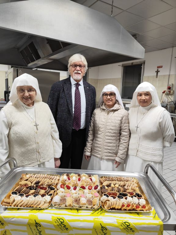 Dopo la maxi torta preparata dall’Agenzia di Formazione Professionale Colline Astigiane per festeggiare i 91 anni della cugina di Papa Francesco (CLICCA QUI per rileggere l’articolo), gli ospiti della mensa sociale di corso Genova hanno potuto gustare le specialità dell’Antica pasticceria Giordanino, associata Confcommercio.