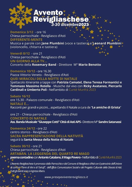 L’Avvento è patrocinato dall’Unione di Comuni “Terre di vini e di Tartufi”, dall’Ufficio Comunicazioni Sociali e dal Progetto Culturale della diocesi di Asti.