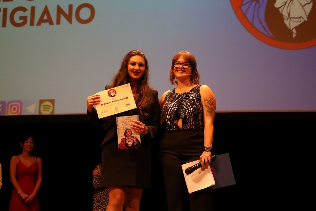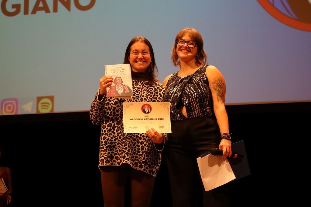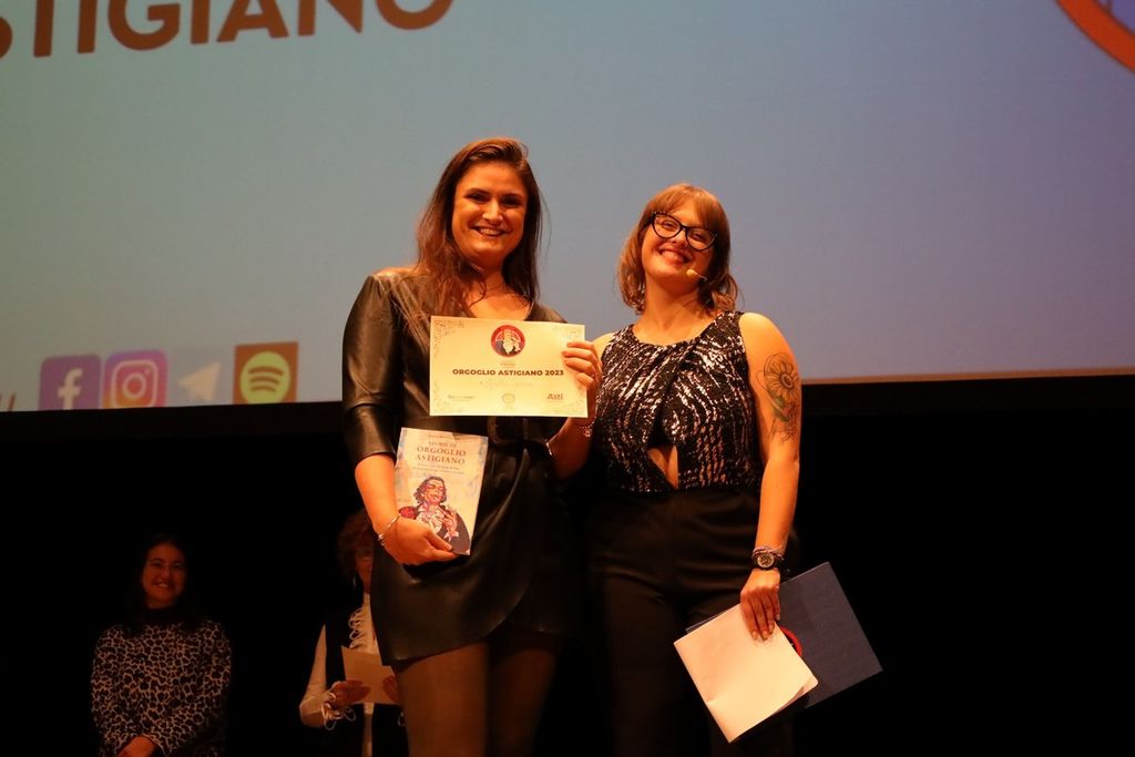 Il primo premio speciale della serata è andato alle Diabolike Giulia Francesca Massaglia e Stefania Caretta, tra le prime sostenitrici del progetto di "Orgoglio Astigiano", autrici del logo e della copertina del libro "Storie di Orgoglio Astigiano".