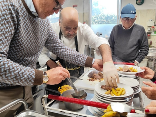 Oggi, giovedì 14 dicembre, per il terzo anno consecutivo, presso la Mensa Sociale della Città di Asti, i cuochi del Circolo Golf di Asti Bruno e Mario Vigliotti, affiancati dai volontari Andrea, Arnaldo, Fabio, Gaia, Gianni, Gino, Luciana, Natalina e Teresa, hanno preparato e servito un sontuoso pranzo per oltre 70 persone, aderendo al progetto “Un piatto per la Mensa” dell’Associazione “Il Dono del Volo”.