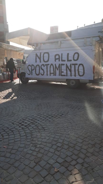 Anche oggi tra i banchi di piazza Alfieri sono spuntati gli striscioni contro lo spostamento del mercato
