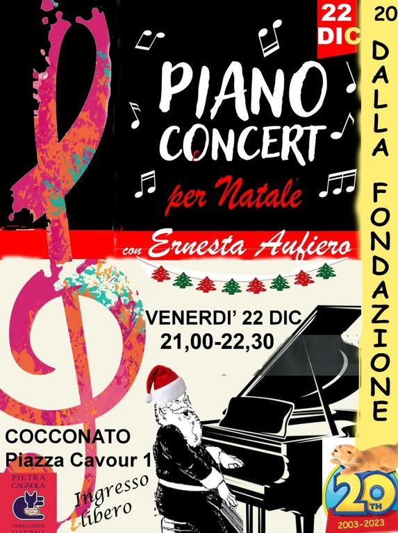 L’avvento è per tradizione tempo di concerti. Fra i tanti appuntamenti, venerdì 22 dicembre a Cocconato risuonerà il Piano Concert per Natale con la pianista e concertista astigiana Ernesta Aufiero.