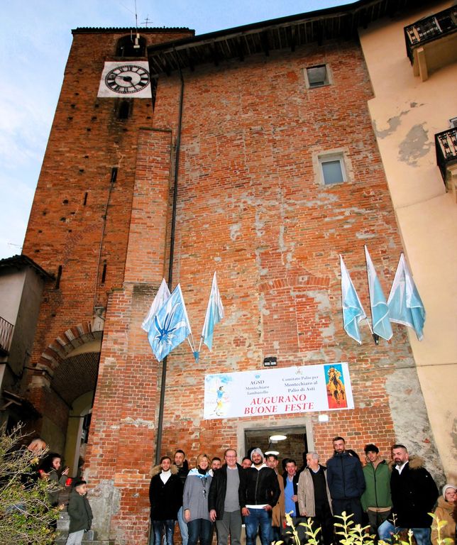 Sabato scorso, 23 dicembre, si sono tenuti i tradizionali auguri di Buon Natale e Buon Anno, nella sala Brosio, sotto la torre nel palazzo comunale, ora sede condivisa dell’ AGSD Montechiaro Tamburello e del comitato palio per Montechiaro al Palio di Asti.