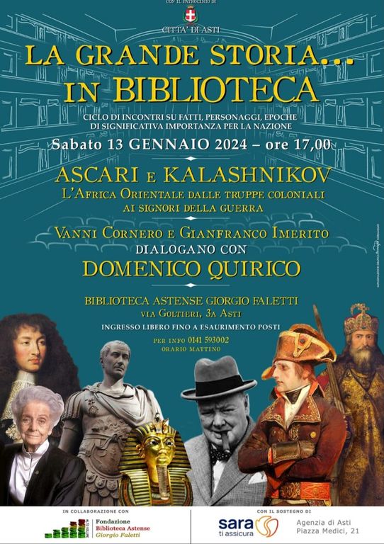 Sabato 13 gennaio alle 17 presso la Biblioteca Astense Giorgio Faletti si terrà l’incontro “Ascari e Kalashnikov: l’Africa orientale dalle truppe coloniali ai signori della guerra” con il giornalista Domenico Quirico.