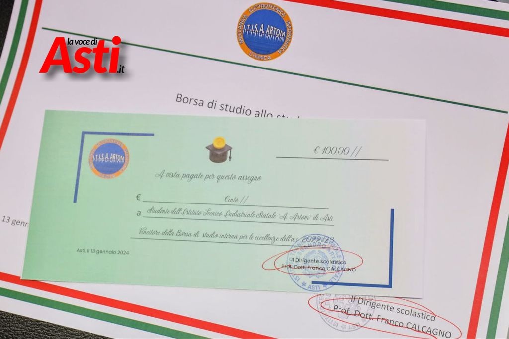 Nell’ambito delle attività di open school, sono state consegnate oggi all'Istituto Artom le borse di studio per premiare 25 studenti e studentesse della sede di Asti, che si sono distinti con media finale superiore a 8/10 sui risultati dell’anno scolastico 2022/23.