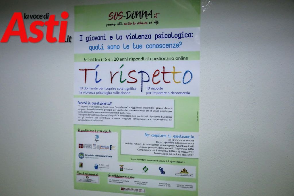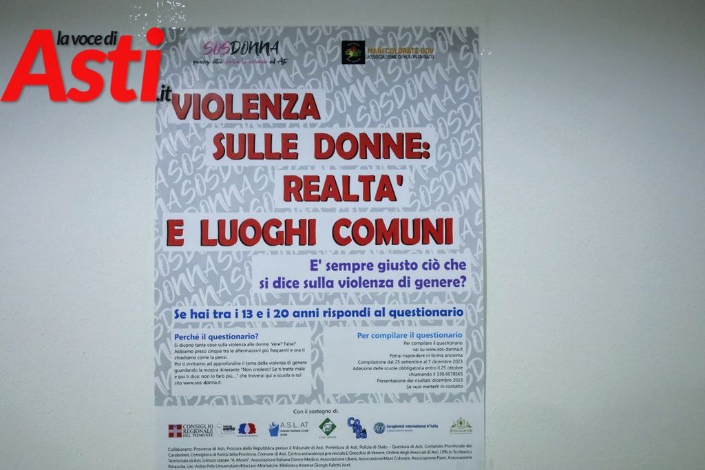Il questionario "Violenza sulle donne: realtà e luoghi comuni" lanciato nei mesi scorsi nelle scuole astigiane da Sos donna, in collaborazione con l'Ufficio Scolastico Territoriale, ha coinvolto i giovani delle secondarie di primo e secondo grado, compresi gli studenti delle agenzie formative, gli allievi del CPIA e gli ospiti della comunità per minori "La Bussola" di Valfenera.