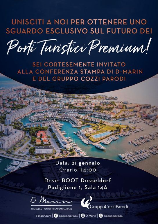 D-Marin, la rete di porti turistici di alto livello, è stata fondata nel 2003 e ha sede in Grecia. Gestisce 26 porti turistici in Grecia, Turchia, Emirati Arabi Uniti, Montenegro, Croazia, Italia, Spagna, Malta e Albania, per un totale di oltre 13.000 posti barca e strutture di bacino di carenaggio che possono ospitare oltre 3.000 imbarcazioni. D-Marin si impegna a fornire un'esperienza di navigazione gratificante offrendo una qualità eccezionale e il più alto livello di assistenza ai propri clienti privati e partner commerciali.