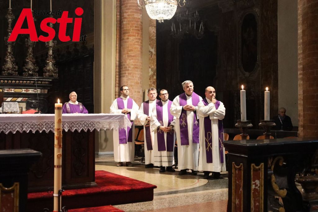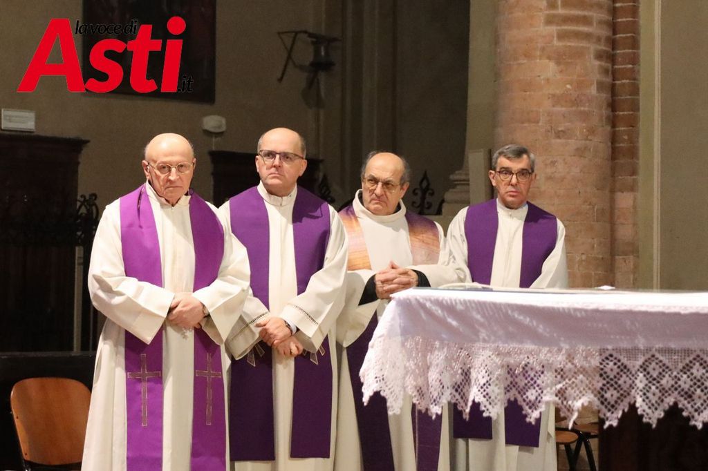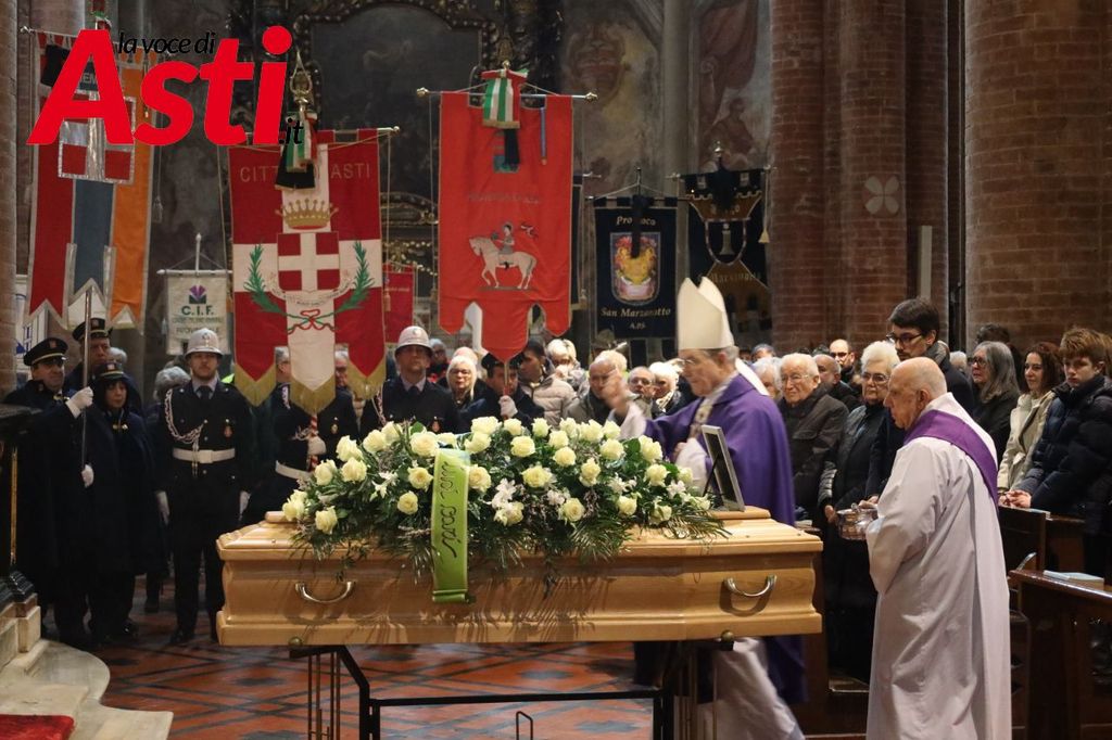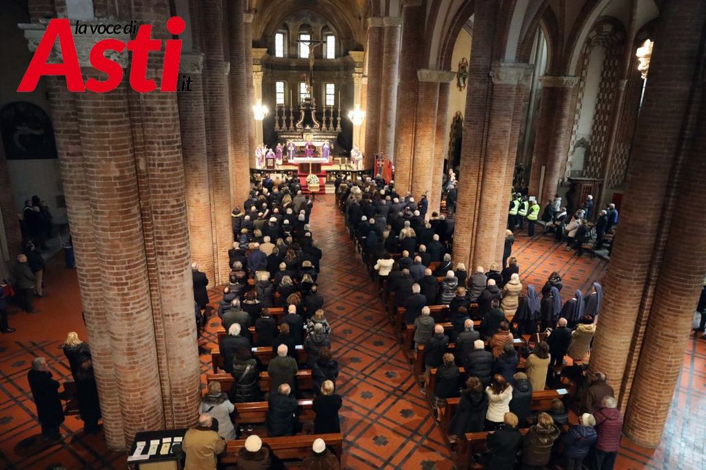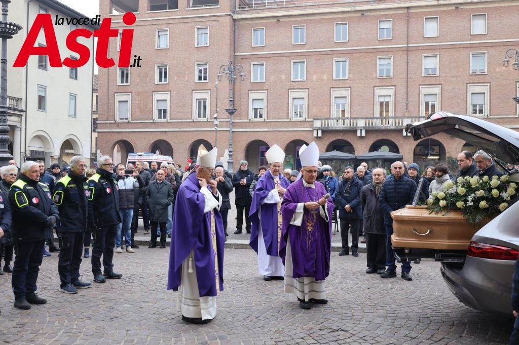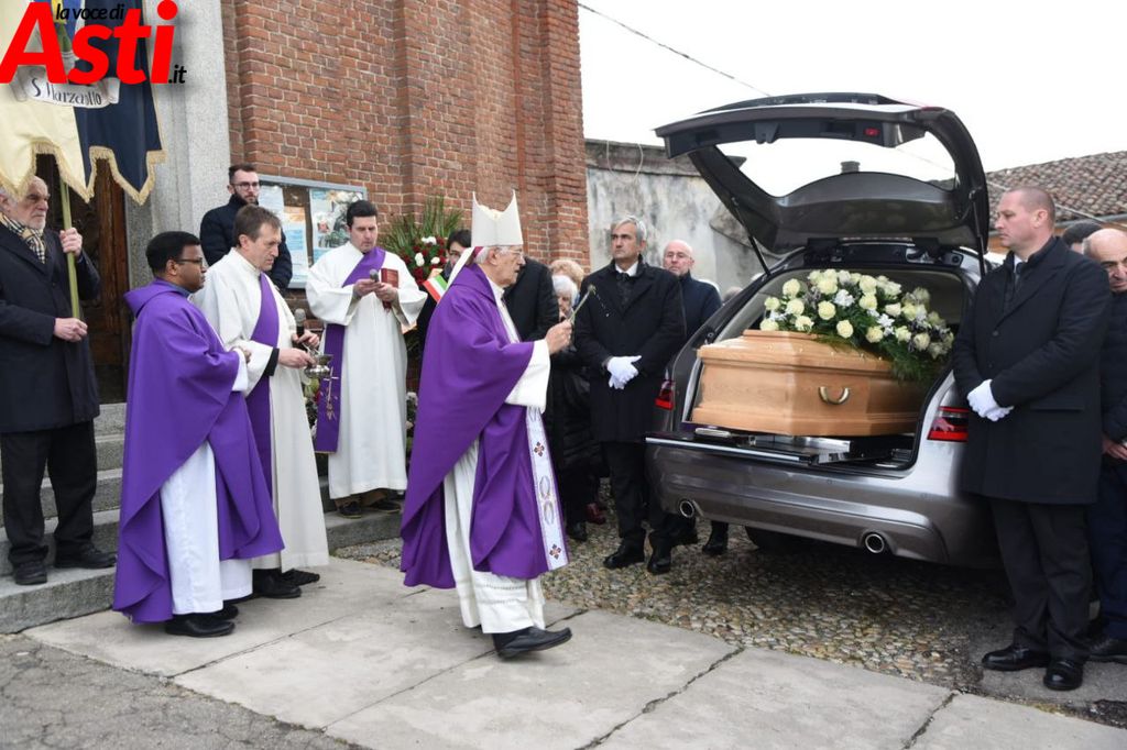 Ha fatto seguito l'ingresso in Collegiata, dove il vescovo di Asti monsignor Marco Prastaro, il vescovo emerito monsignor Francesco Ravinale e il vescovo di Ivrea monsignor Edoardo Cerrato (nativo di San Marzanotto e cugino della defunta) stanno officiando il rito funebre.