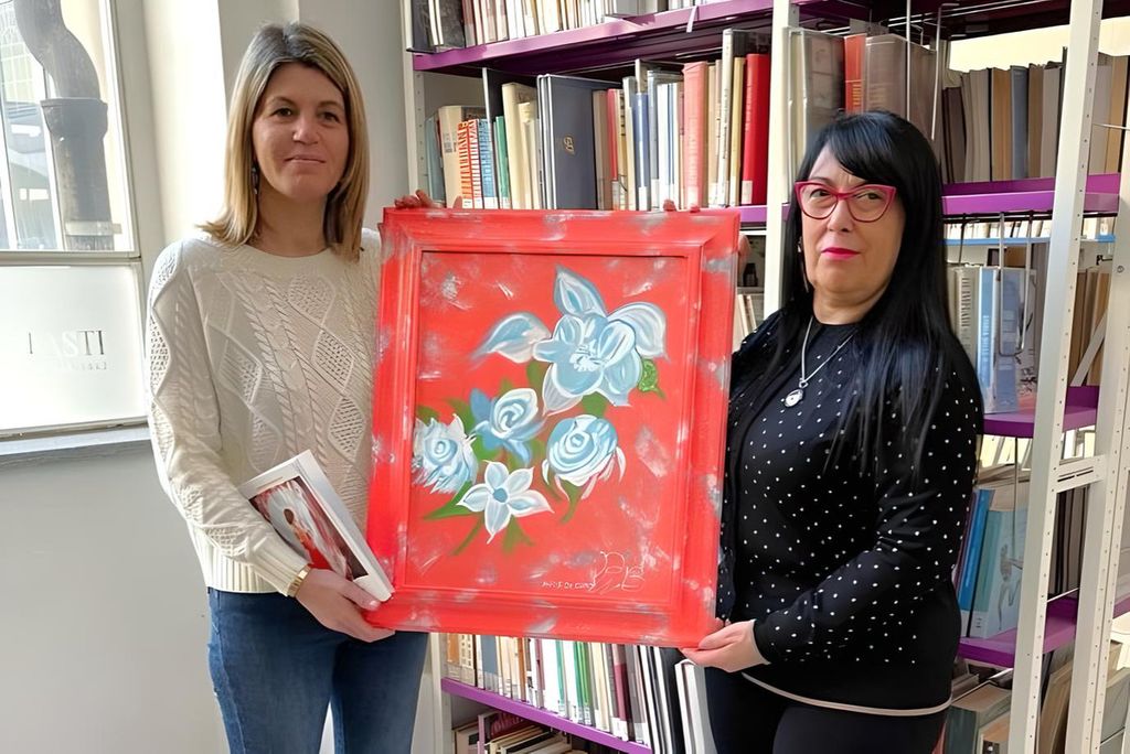 La Biblioteca Astense “Giorgio Faletti” ha recentemente ricevuto un dono di grande valore artistico: l'artista contemporanea Daniela Bussolino ha donato nelle mani della direttrice Alessia Conti il suo dipinto "La delicatezza nei fiori" insieme al suo libro "Mondo a colori".
