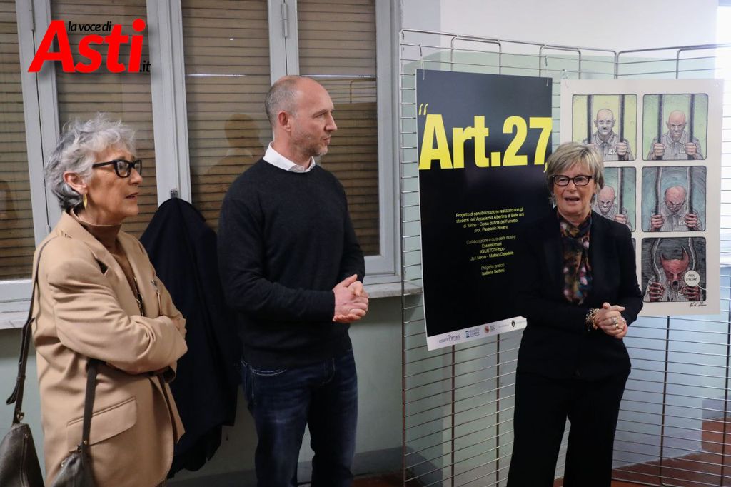 Con queste intenzioni è stata inaugurata questa mattina la mostra “Art. 27” presso il Castigliano di Asti L’esposizione, progettata dall’associazione “Essere umani” di Torino e realizzata con la collaborazione degli studenti dell’Accademia Albertina di Belle Arti di Torino, si basa sull’articolo 27 della Costituzione della Repubblica Italiana, che stabilisce il principio della personalità della responsabilità penale.