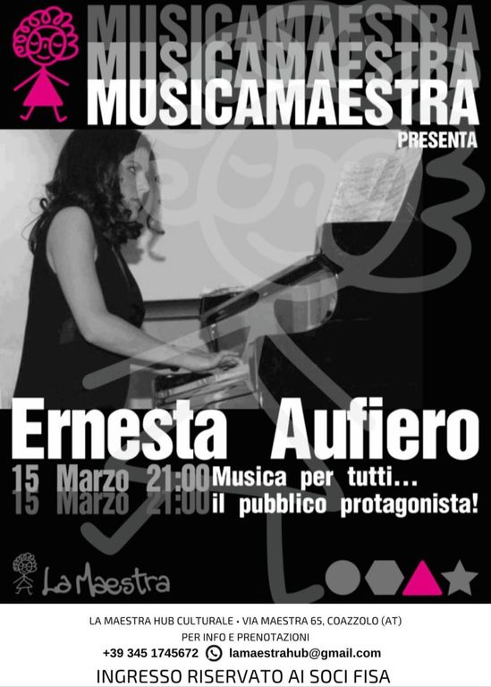L'ingresso è libero, è gradita la prenotazione 3451745672, lamaestrahub@gmail.com