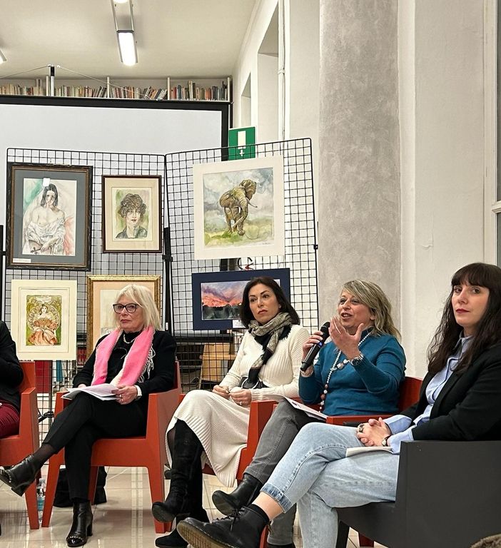 L’iniziativa Patrocinata dalla Biblioteca Astense Giorgio Faletti di Asti diretta da Alessia Conti e dalla Commissione Comunale Pari Opportunità Città di Asti, presieduta da Nadia Miletto, si è svolta nella Sala delle Colonne arricchita per l’evento dall’ esposizione delle opere, prevalentemente ad acquerello, delle pittrici Luciana Basso e Annamaria Gerbo. Una tecnica molto luminosa, difficile per l’istantaneità della pennellata, non correggibile. I ritratti e i volti femminili rappresentati, configuranti la donna nelle sue diverse identità, hanno trasmesso bellezza e suscitato forti emozioni.