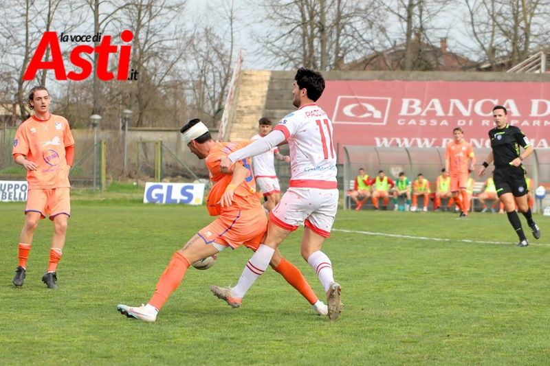 Si percepisce molta frenesia nelle azioni biancorosse dei primi 45 minuti di gioco. Poche conclusioni degne di nota e tutte che partono dal fulmineo Gabriele Giacchino, autore di una splendida imbucata proprio per Favale che al 22’ conclude alle stelle l’occasione più importante per il vantaggio astigiano.