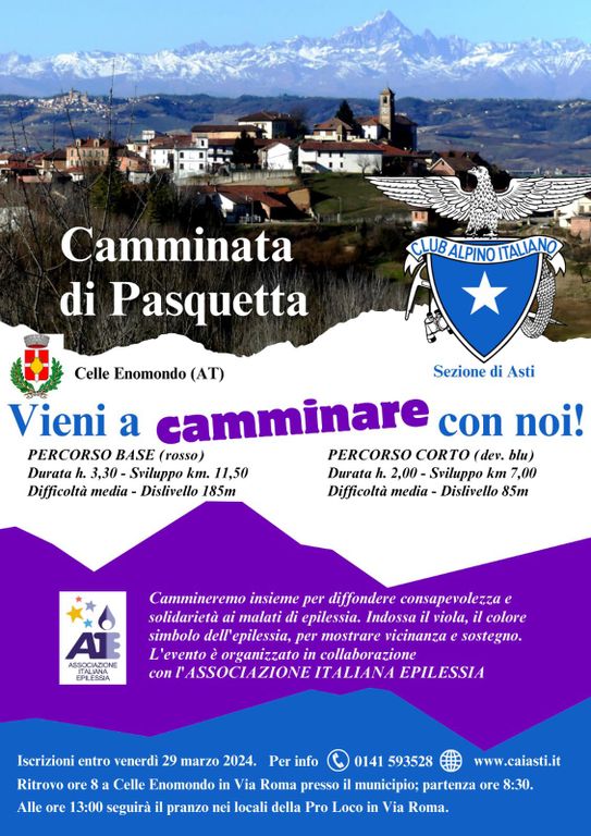 Iscrizioni entro domani (venerdì 29 marzo), per maggiori informazioni: 0141/593528 o www.caiasti.it