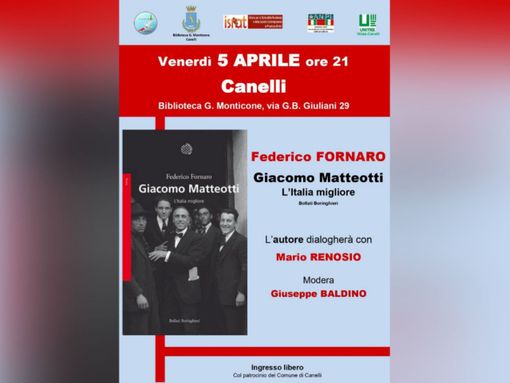 Venerdì 5 aprile, alle 21, presso la Biblioteca Civica "G. Monticone" di via G.B. Giuliani si svolgerà l'interessante presentazione del saggio "Giacomo Matteotti. L'Italia migliore", opera dell'On. Federico Fornaro edita da Bollati Boringhieri.